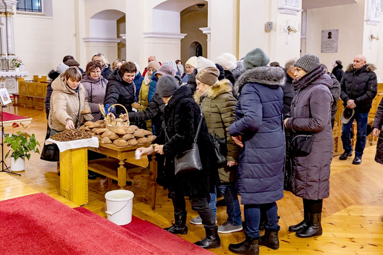 Tikintiesiems buvo dalijama pašventinta duona ir vanduo.