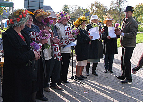 SKRYBĖLĖS: Dovanėlėmis ir rudeninių gėlių žiedais buvo pagerbti skrybėlių puošimo konkurso dalyviai.