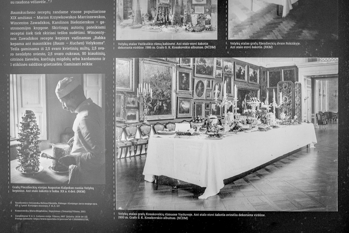 Burbiškio dvaro istorijos muziejus nuolat įvairiais aspektais populiarina dvarus ir jų kultūrą, šį kartą lankytojus kviečia pažinti gastronomijos paveldą. Kaišiadorių muziejaus parengta stendinė paroda pasakoja, kaip prabangus baumkuchenas (vok. „medžio pyragas“) per dvarų virtuves atkeliavo į Lietuvą ir tapo prestižiniu desertu. Dvarų kultūra ir jų meistrų konditeriniai ieškojimai pavertė šį kepinį reprezentaciniu mūsų krašto simboliu.
