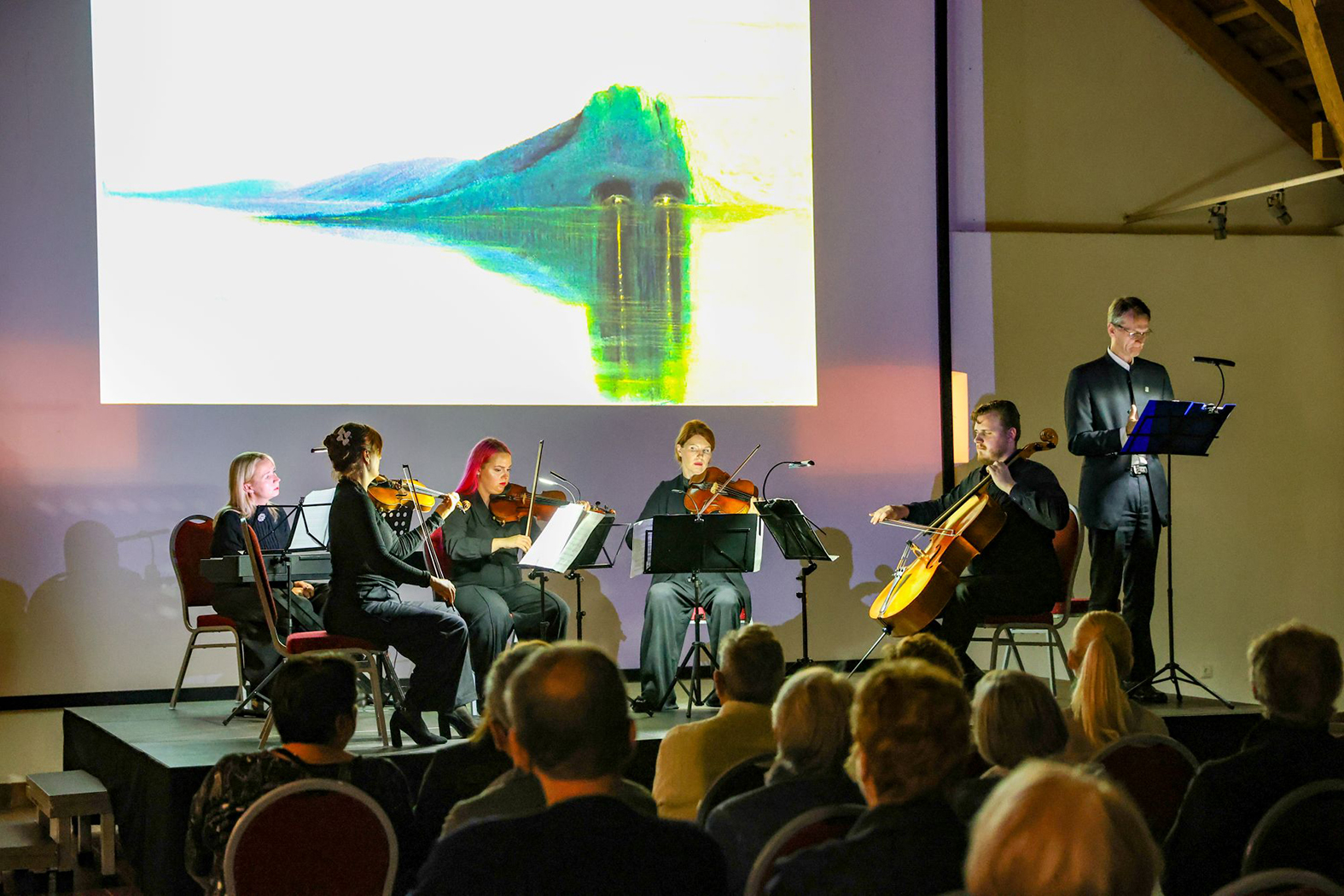 Kauno styginių kvartetas su pianiste K. Kaklauskaite ir aktoriumi H. Savickiu programoje sujungė muziką, dailę ir teatrą. Žiūrovai dvaro popietėje mėgavosi itin profesionaliai atliekamais kompozitorių M. K. Čiurlionio, Remigijaus Merkelio, Zitos Bružaitės muzikos kūriniais, širdį paliečiančiais meilės laiškais ir ekrane rodomais garsiaisiais M. K. Čiurlionio paveikslais. Ypatingas dėmesys skirtas paveikslui „Ramybė“, kuris kompozitorę Z. Bružaitę įkvėpė sukurti kūrinį „Ramybė“ – jo fragmentai nuskambėjo koncerte.