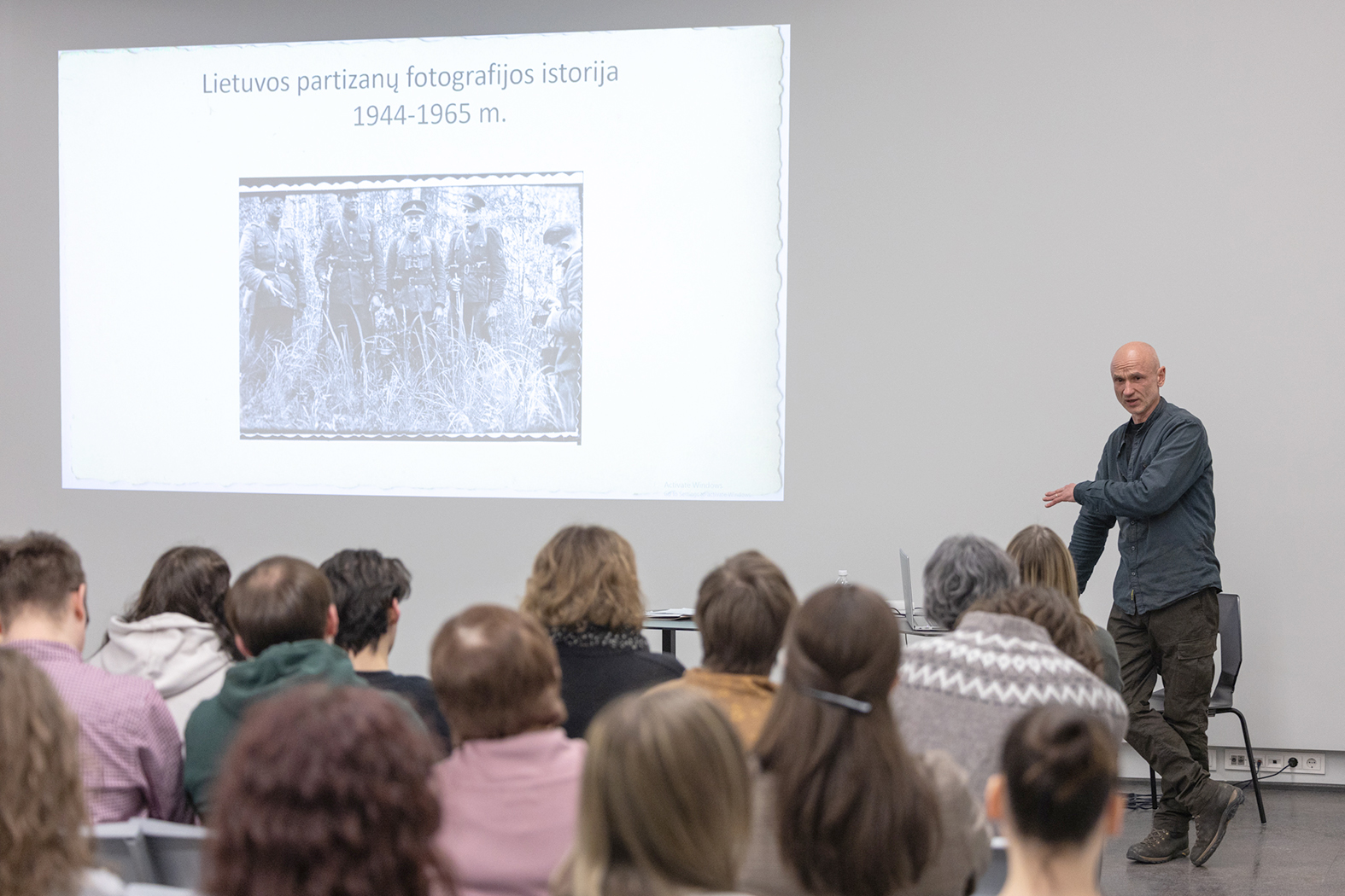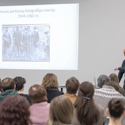 Lektorius apžvelgė partizanų fotografijų 1944–1965 metais istoriją, pasidalijo per tris dešimtmečius sukaupta patirtimi, tyrinėjant partizanų fotografijas, paaiškino, kaip, pasitelkiant tarpdisciplininius tyrimus, vyksta užfiksuotų asmenų identifikavimas, įvykių datavimas.