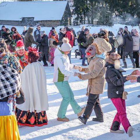 Į Daugyvenės kultūros istorijos muziejaus-draustinio Kleboniškių kaimo buities muziejų (Radviliškio r.) prigužėjo gausybė persirengėlių ir svečių – vyko blynais kvepiančios, juoku klegančios, linksmybėmis užkrečiančios Užgavėnės.
