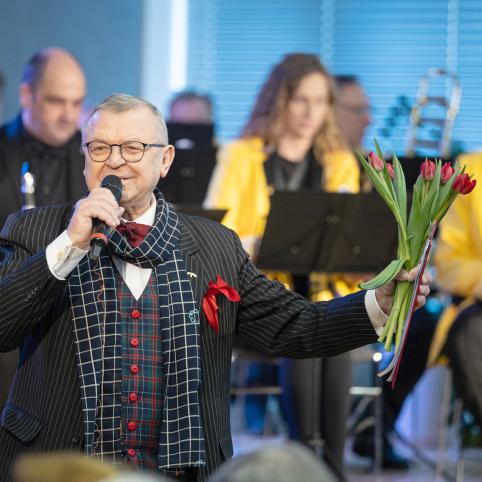 Atvykstančius klausytojus pasitiko saksofonininko Gedimino Brūzgos atliekama muzika, o Šiaulių pučiamųjų orkestro vyrai Moters dienos proga dovanojo pavasario žiedus – tulpes.