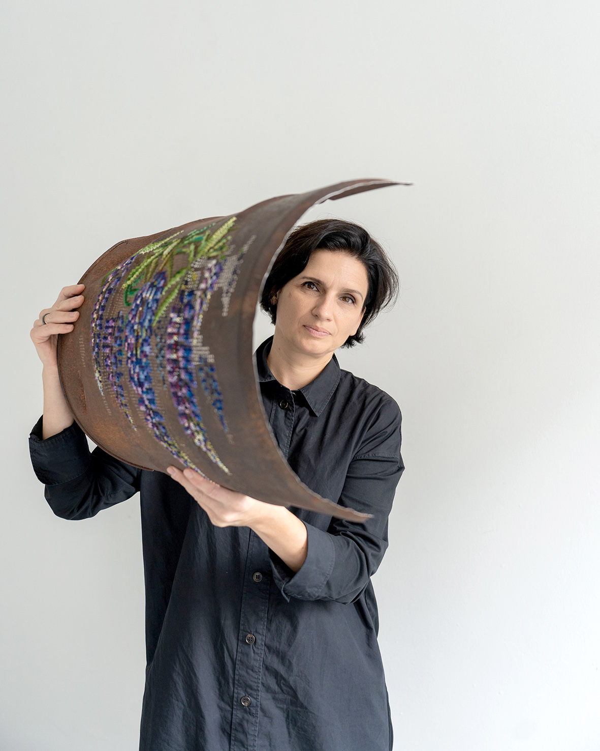 Pasitelkdama specifinę siuvinėjimo kryželiu ant kietų metalo paviršių techniką, menininkė pramoninius ar kasdieniškus objektus transformuoja į jautrius ir daugiaprasmius meno kūrinius.