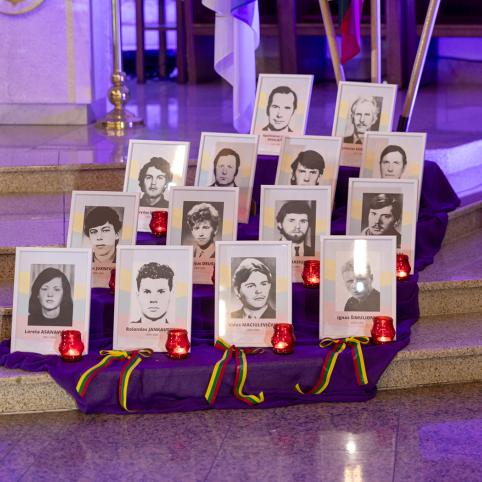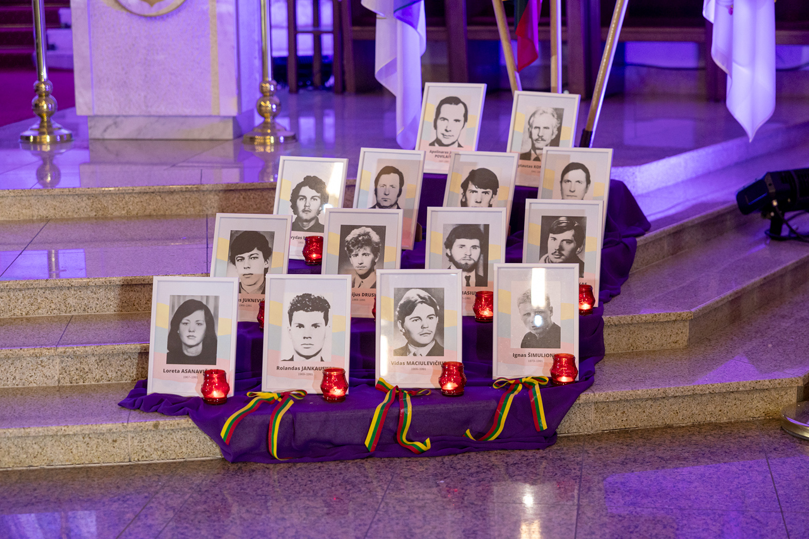 Į atminimo vakaro dalyvius iš nuotraukų žvelgė žuvę didvyriai – prie kiekvienos fotografijos degė žvakė.