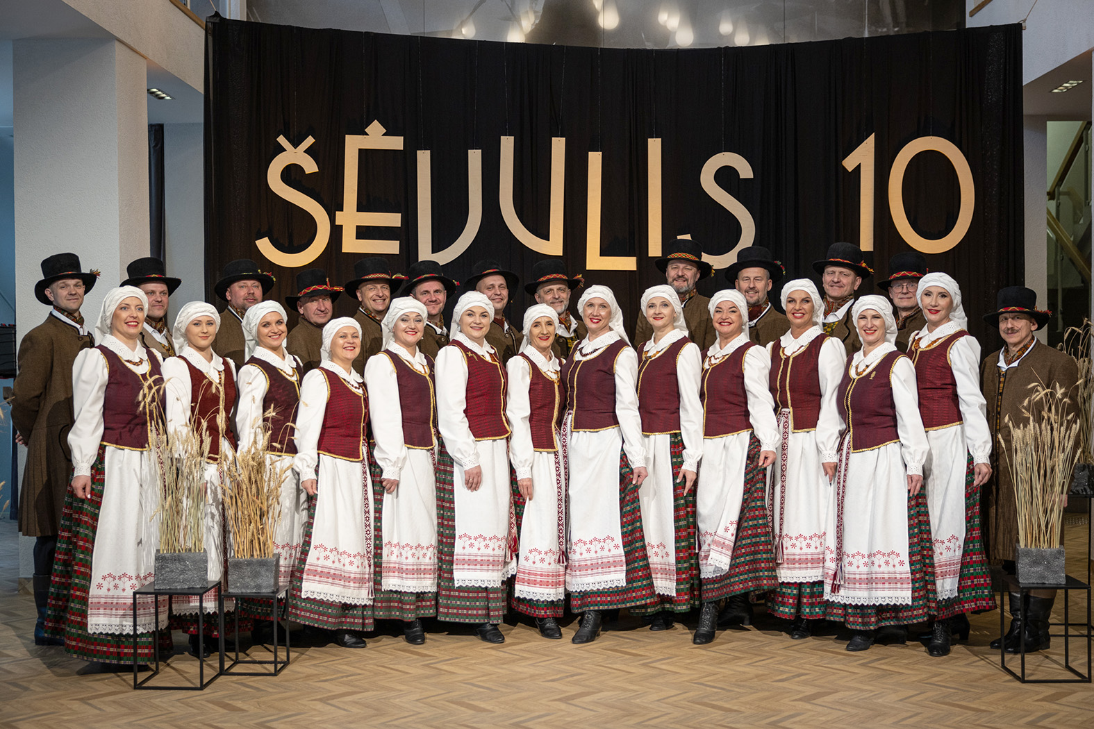 Šokiais ir dainomis sukaktuvininkus sveikino Palangos kultūros centro vyresniųjų liaudiškų šokių grupė „Banguolis“ (vad. Eglė Baltriukienė), Šiaulių kultūros centro liaudiškų šokių grupė „Vajaunas“ (meno vad. Romualdas Laugalis), Baloži kultūros centro vyresniųjų liaudiškų šokių grupė „Baloži“ (vad. Mārtiņš Ezeriņš), Širvintų kultūros centro vyresniųjų liaudiškų šokių grupė „Viesula“ (vad. Loreta Putvinskaitė-Vičienė), Visagino kultūros centro vyresniųjų liaudiškų šokių grupė „Gervė“ (vad. Ugnius Cikanas), Vilniaus miesto liaudiškos muzikos ir šokių ansamblis „Vilnis“ (meno vad. Rimutė Zaleckaitė), Šiaulių miesto Jovaro progimnazijos ir Didždvario gimnazijos vaikų ir jaunimo tautinių šokių ansamblis „Šėltinis“ (meno vad. Violeta ir Romualdas Laugaliai, Greta Petrauskė, Germanas Urbonavičius) – būtent šiame kolektyve glūdi „Šėvulio“ ištakos.