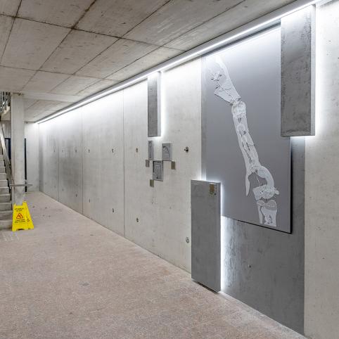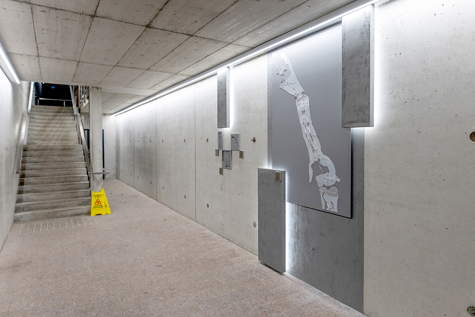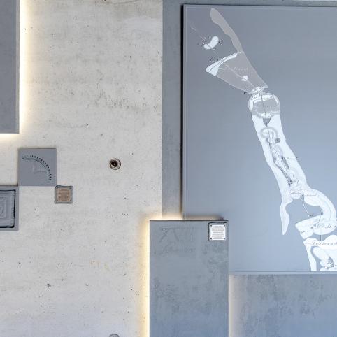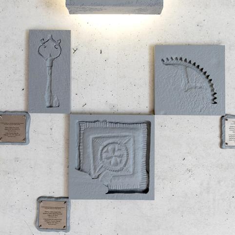 Šiauliuose, Prisikėlimo aikštės apžvalgos pastate, kuriama nauja ekspozicija – miesto praeitį čia pasakoja į architektūrą integruoti reljefiniai įspaudai betone.