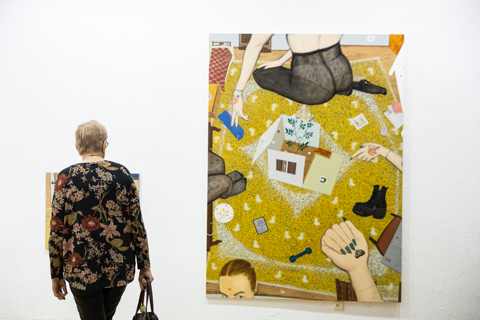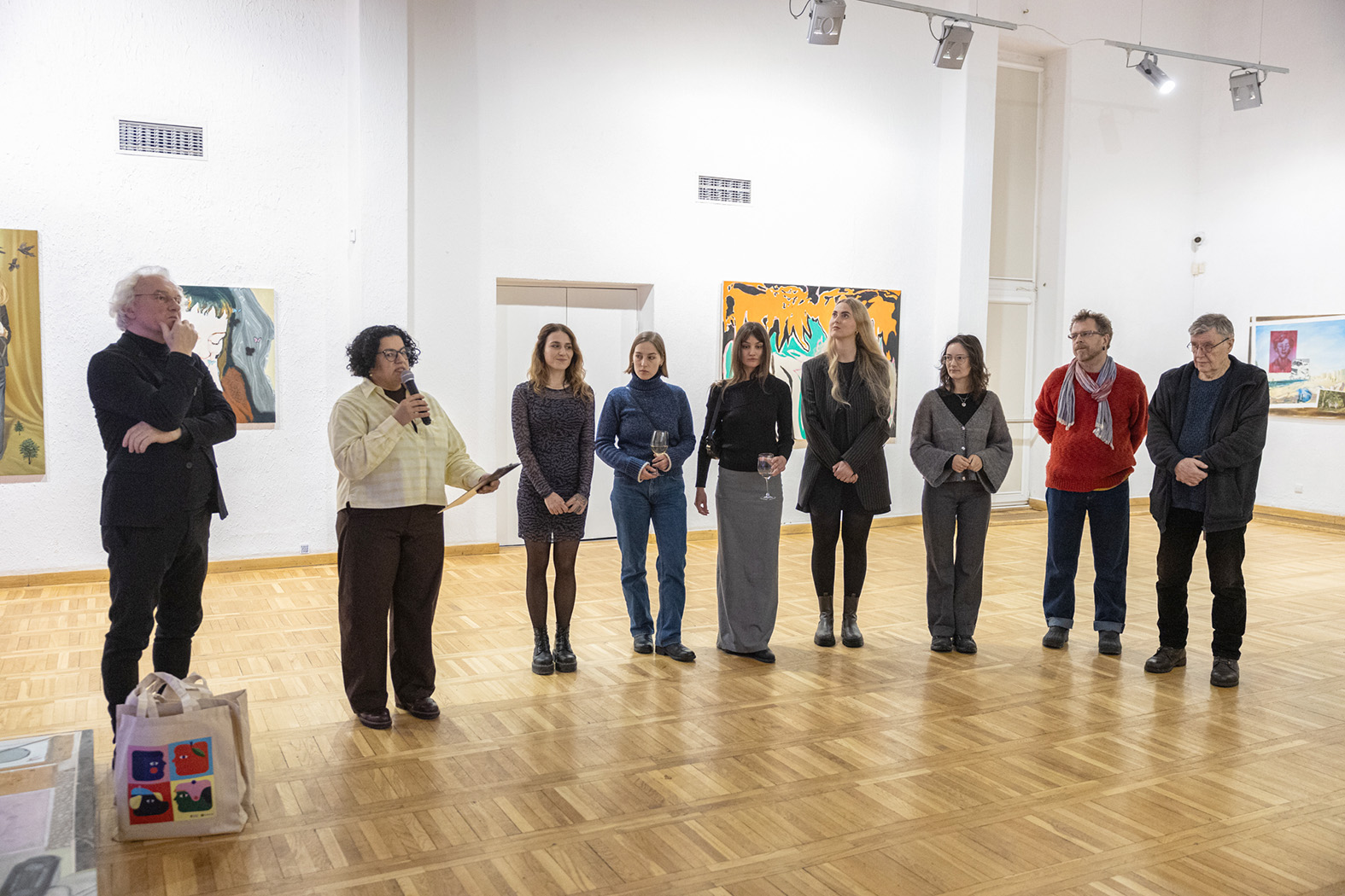 Trečioji atidaryta paroda – grupinė tapybos. Parodoje, pavadintoje „Adhezijos“, kūrybą eksponuoja Donata Minderytė, Eglė Norkutė, Liucija Pačkauskaitė, Monika Kornilova, Monika Plentauskaitė, Paulina Domašauskaitė ir Vita Opolskytė. Parodos dizaineris – Kristijonas Gurčinas.