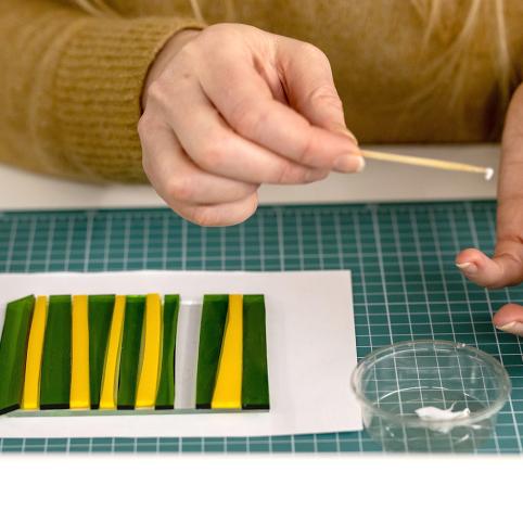 „Fusing“ – tai šiuolaikinio stiklo meno technologija, kai skirtingų spalvų stiklo fragmentai, milteliai ar plokštelės lydomi aukštoje temperatūroje, kol tampa vieniu. Šis procesas leidžia eksperimentuoti su forma, spalva, faktūra ir šviesa.