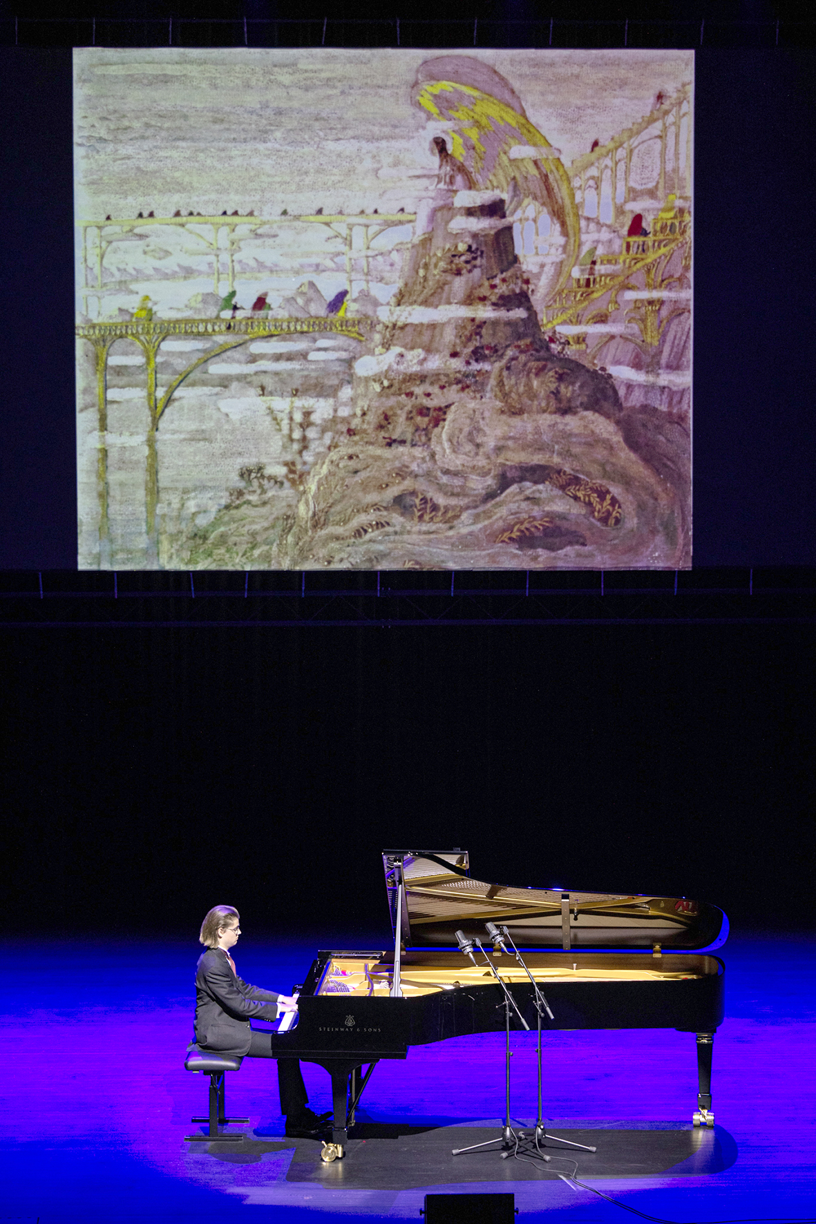 Pirmoje koncerto dalyje pianistas, Šiaulių Sauliaus Sondeckio menų gimnazijos auklėtinis Povilas Ušinskis atliko M. K. Čiurlionio fortepijoninius kūrinius pagal mokytojos ekspertės Raimondos Sližienės parengtą programą „Diena po dienos, metai iš metų...“.