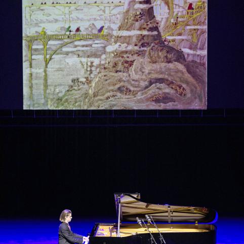 Intarpuose skambėjo P. Ušinskio ir jo mokytojos Raimondos Sližienės skaitomi M. K. Čiurlionio literatūriniai tekstai, ekrane žiūrovai galėjo mėgautis M. K. Čiurlionio dailės kūriniais.