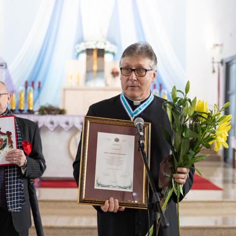Šv. Kazimiero ordino Šiaulių apskrities komtūrijos Lelijos garbės ženklas įteiktas Šiaulių šviesuoliui, kunigui, visuomenininkui Gintarui Antanui Jonikui.