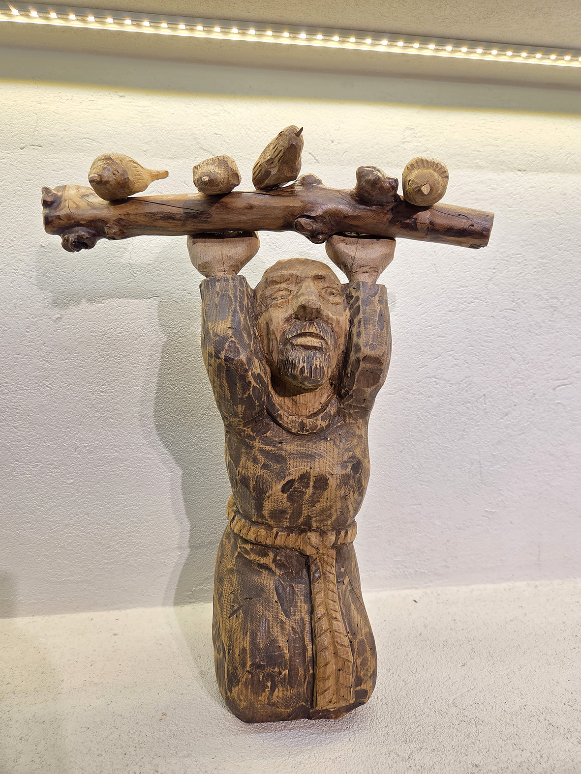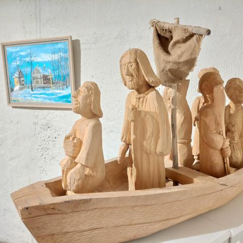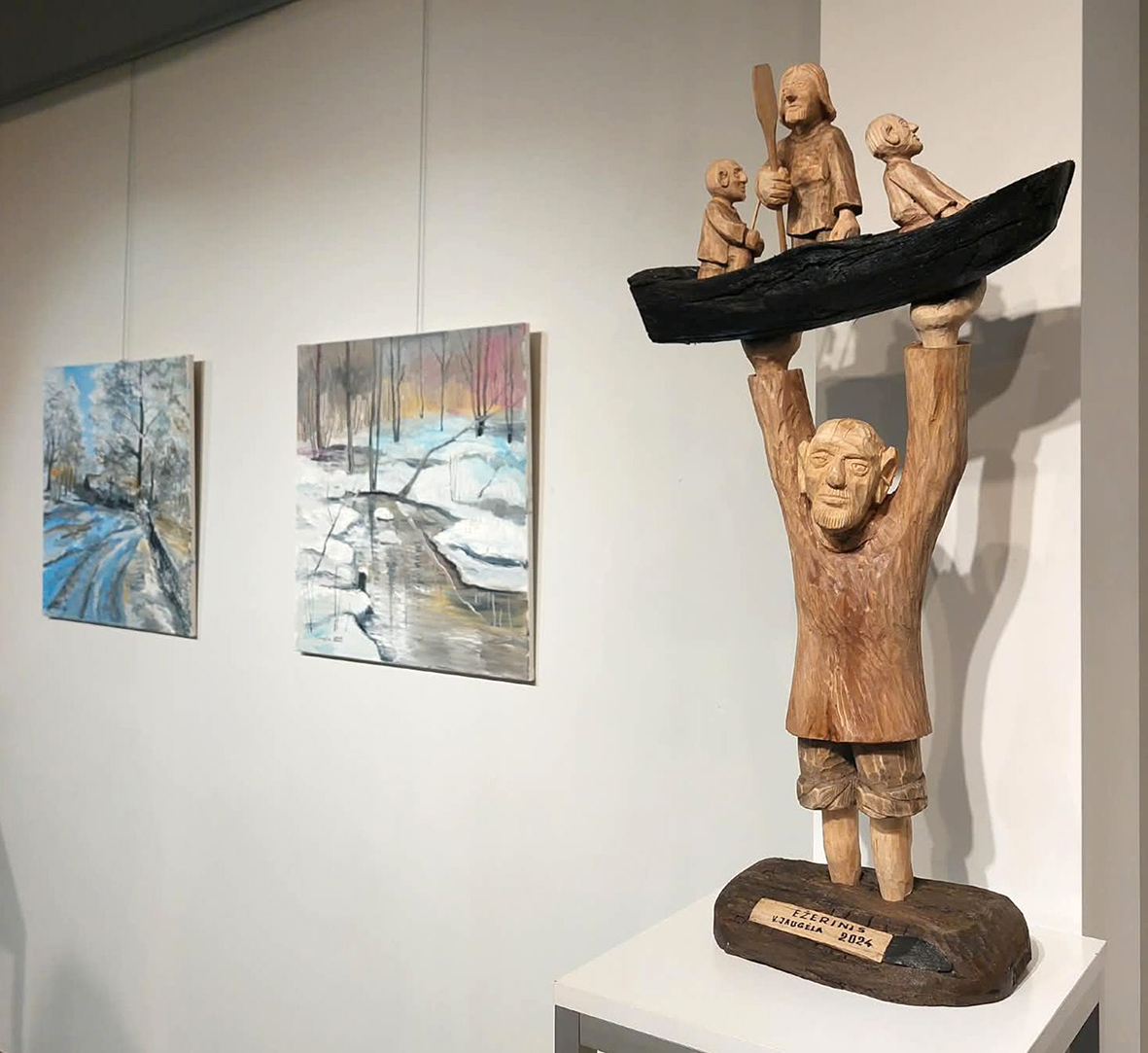 Skulptūrose atgyja ir gyvenimiški siužetai, ir šventųjų gyvenimai. Eksponuojami tapybos darbai – peizažai – daugiausia sukurti pastaraisiais metais.