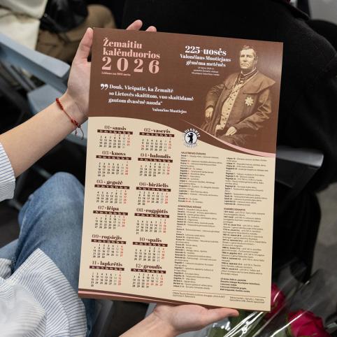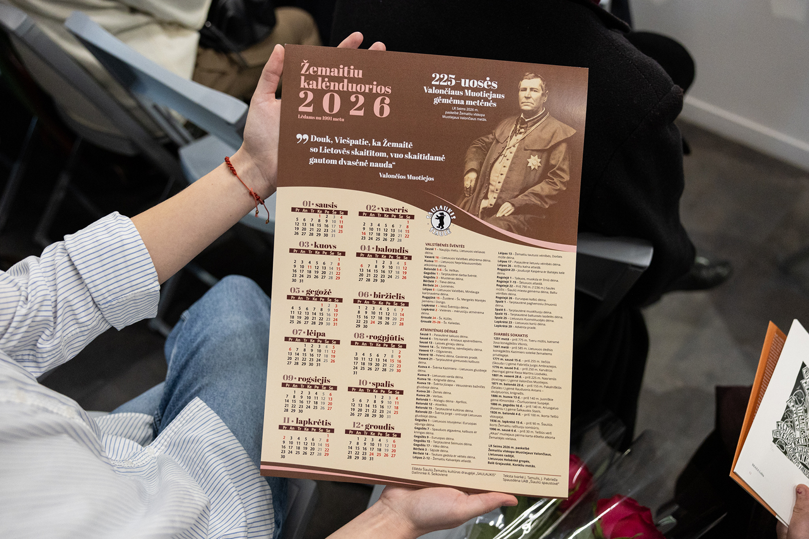 Kalendorių, skirtą vyskupo Motiejaus Valančiaus 225-osioms gimimo metinėms, pristatė dailininkė, „Saulaukio“ valdybos narė Rasa Šeikovienė.