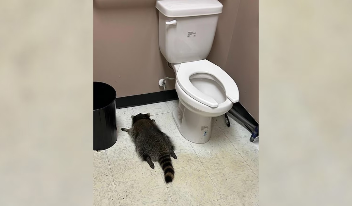 Į pagalbą iškviestas gyvūnų apsaugos grupės darbuotojas vietoje konstatavo, kad meškėnas parduotuvėje išvartė kelias lentynas. Alkoholio buteliai sudužo ir ant grindų susidarė balos. Gyvūną darbuotoja rado tualete „stipriai apsvaigusį“ ir be sąmonės, rašo organizacija.