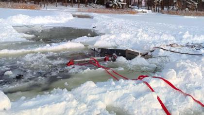 Ežero ledui traktorius buvo per sunkus