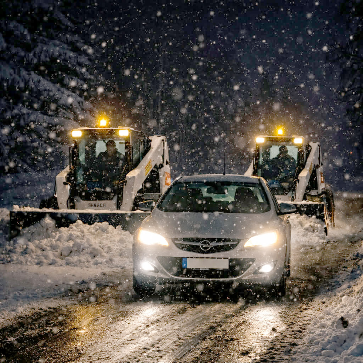 Antrą valandą nakties, kol dauguma ramiai ilsėjosi, du šiauliečiai traktoriais „Bobcat“ stumdė sniegą daugiabučių namų kiemuose. Darbą Trakų gatvėje staiga sutrikdė per veidrodėlį pastebėtas sparčiai artėjantis automobilis „Opel Zafira“.