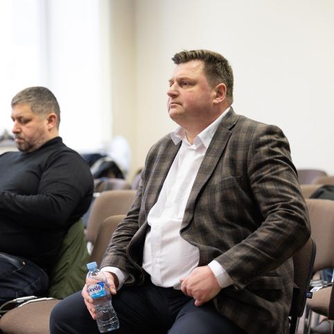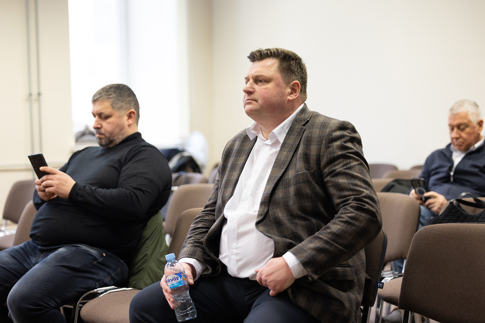 Į pirmą eilę sėdo Šiaulių miesto savivaldybės narys Zakiras Medžidovas, jis – vienas iš tų, kurie dar nepraleido nė vieno šios bylos posėdžio. Išgirdęs repliką iš salės, esą matuojasi kaltinamojo suolą, nes į pirmąją eilę paprastai sėda tik kaltinamieji, politikas nusišypsojo.