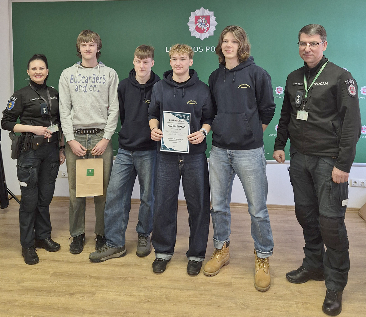 I vietos laimėtojai Pakruojo „Atžalyno“ gimnazijos komanda „Šliopterionai“ rajonui atstovaus kituose Lietuvos policijos konkurso moksleiviams „Aš ir policija'' etapuose.
